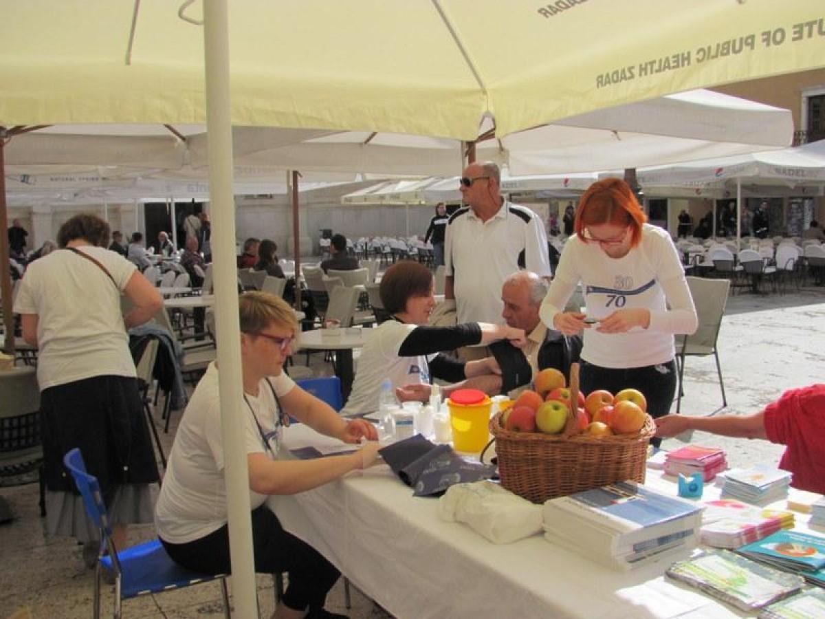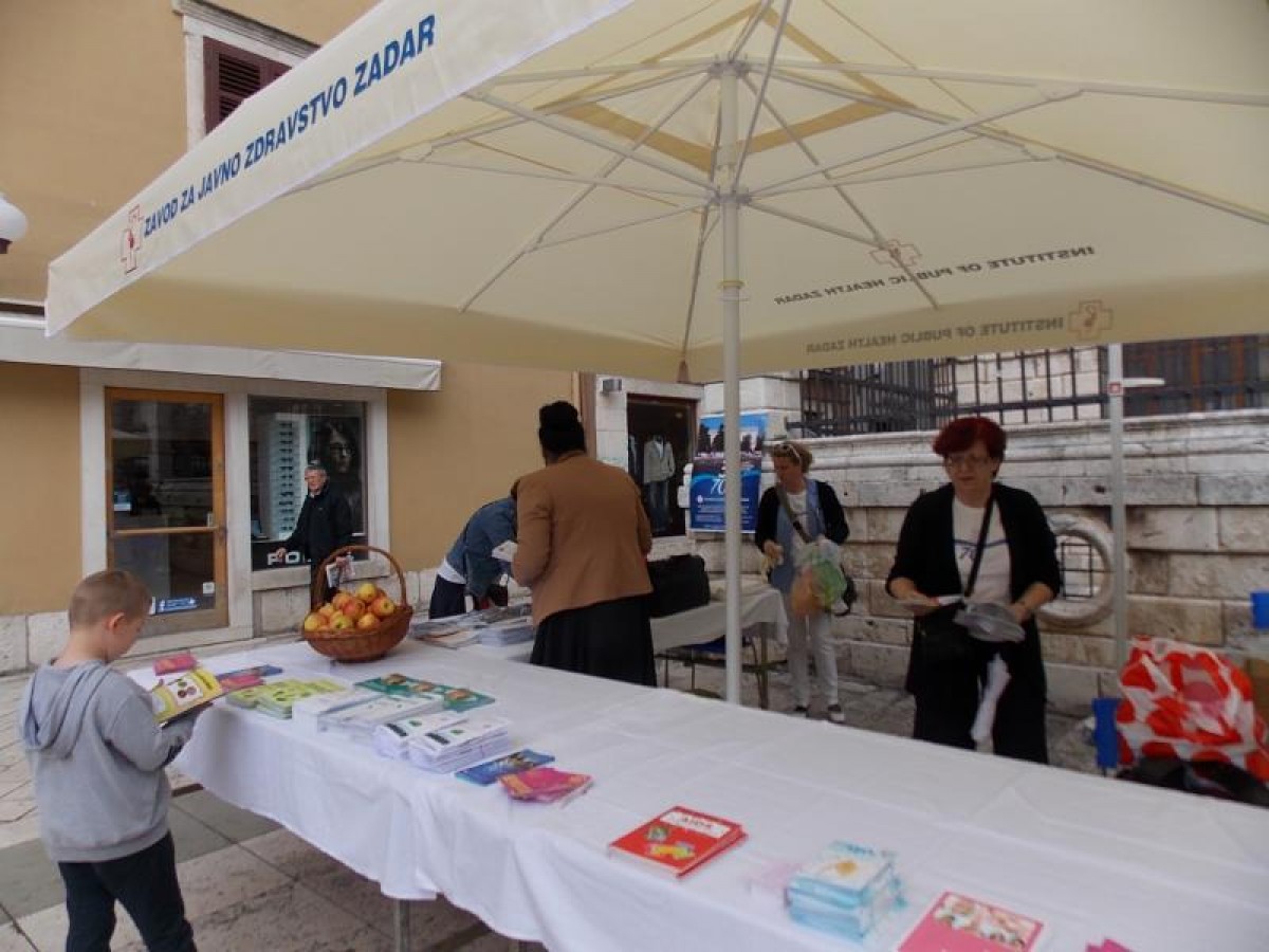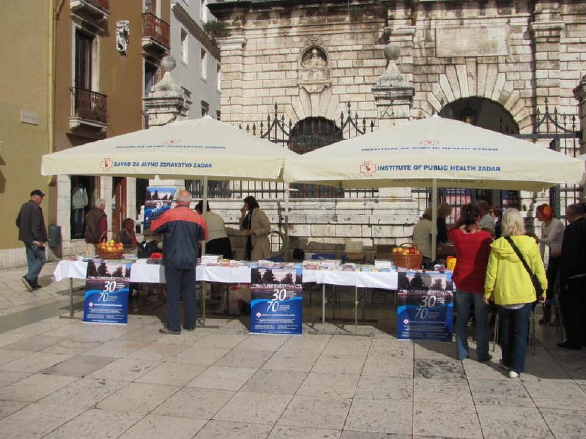 Povodom obilježavanja dvije značajne obljetnice; 30 godina samostalnog djelovanja i 70 godina javnozdravstvenog djelovanja Zavoda za javno zdravstvo Zadar u Zadarskoj županiji, predstavili smo na Narodnom trgu 29. travnja 2014. godine djelatnosti koje obavljamo, približili smo javnosti pojam javnog zdravstva i kroz savjetovanje građana ukazali na važnost prevencije u očuvanju zdravlja i sprječavanju bolesti. Ujedno smo svim zainteresiranim građanima, a bilo ih je oko 300, izmjerili šećer, tlak, tjelesnu težinu i visinu. Ovom prigodom tiskali smo letak o Zavodu za javno zdravstvo Zadar, zanimljivu slikovnicu o bakterijama namijenjenu mlađoj djeci i peludni kalendar. Ove nove kao i „stare“ promidžbene materijale (letke, brošure, kalendare) namijenjene zdravstvem prosvjećivanju dijeli smo našim građanima, a možete ih preuzeti ili pogledati na ovom linku.
